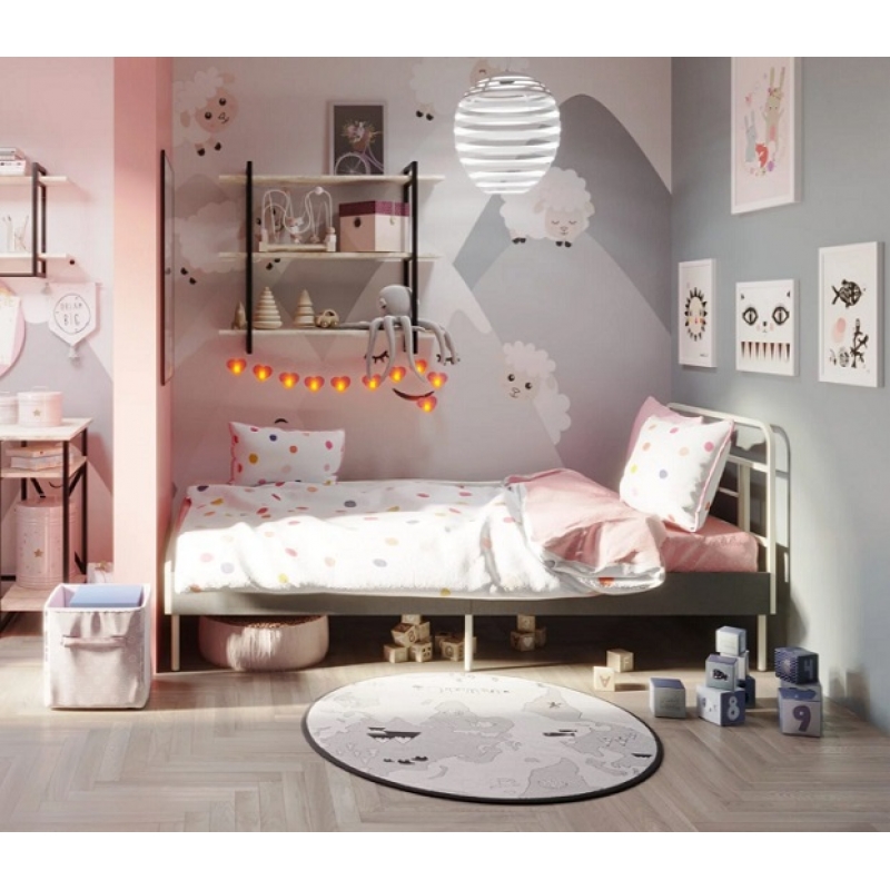 Эта кровать отлично подойдёт для детской комнаты и спальни благодаря своей универсальности и безопасности. Она легко собирается и разбирается, что позволяет экономить пространство при необходимости. Кроме того, металлический каркас обеспечивает прочность и долговечность, что особенно важно для семей с детьми.