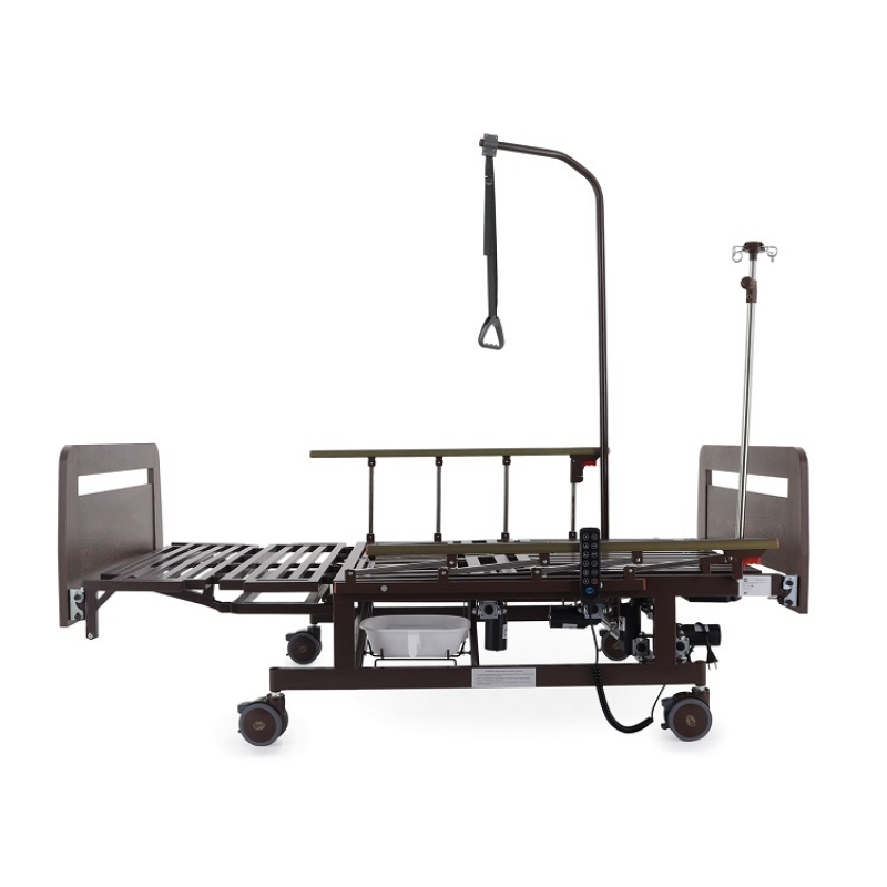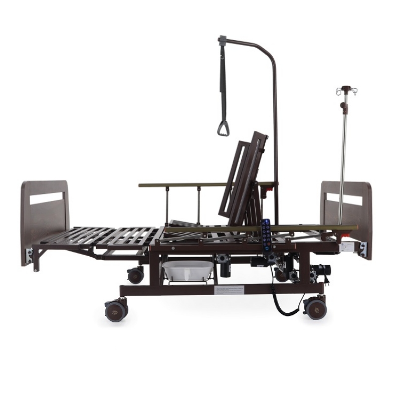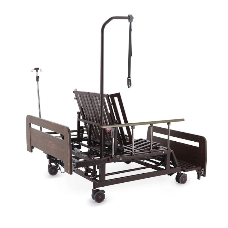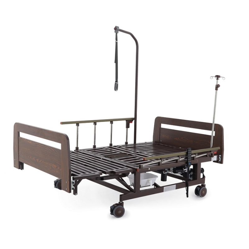 В комплекте есть инфузионная стойка и удобная дуга для подтягивания. Также предусмотрено наличие прикроватного столика, что позволит человеку держать под рукой необходимые ему вещи. Есть удобные поручни. Кровать установлена на самоориентирующиеся колесики. Благодаря им можно легко передвигать пациента, без необходимости использования носилок или кресла-коляски.