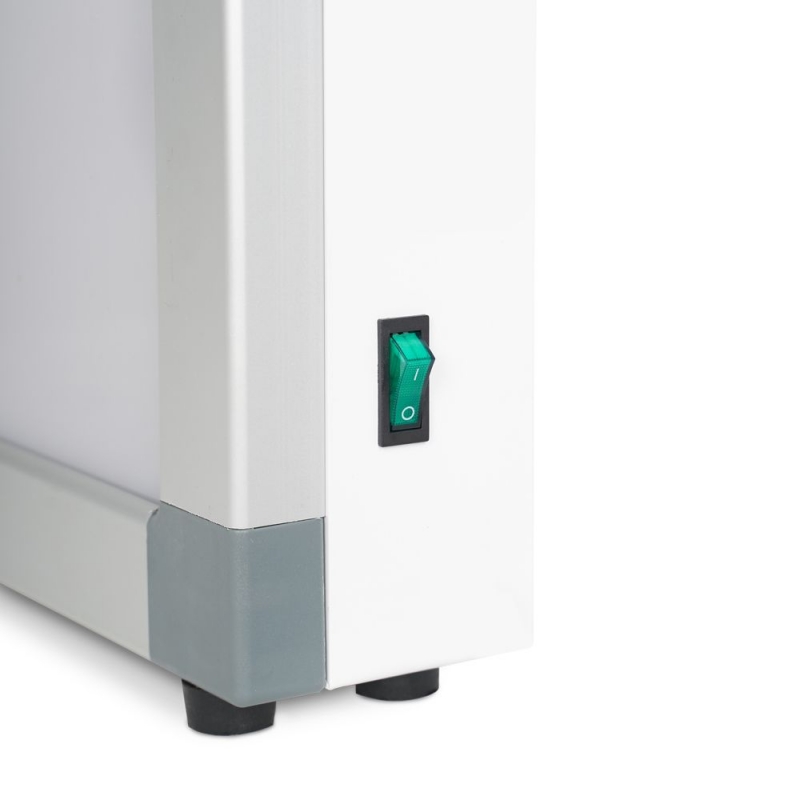 Негатоскоп можно поставить на стол или повесить на стену — в основании прибора предусмотрены устойчивые опоры, а на задней крышке есть отверстия для крепежей.