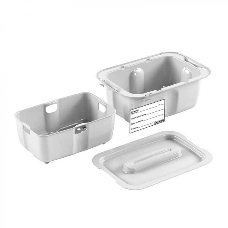 - корпус и поддон контейнера имеют сглаженные углы для быстрой и качественной очистки емкости