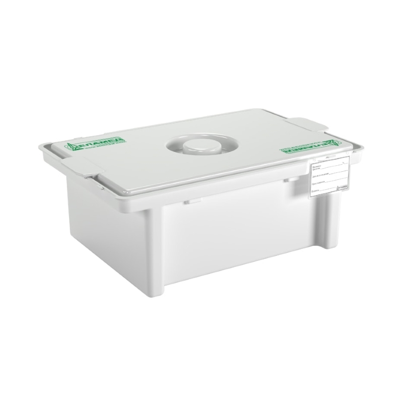 Емкость-контейнер ЕДПО-10-02-2 предназначен для дезинфекции и предстерилизационной очистки изделий медицинского назначения в лечебно-профилактических учреждениях. Изготовлен из химически стойкого, нетоксичного полипропилена. Состоит из корпуса в виде емкости прямоугольной формы, перфорированного поддона, пластины для погружения в раствор лёгких изделий, крышки и карманов (2 шт.). В верхней части корпуса имеются бортики для плотного прилегания крышки и удобства переноски емкости и выемки для устойчивой установки поддона при стекании раствора. На внешней стороне бортиков корпуса имеются две зоны для размещения прозрачных пластиковых карманов под бумажный носитель служебной информации. Технические характеристики: