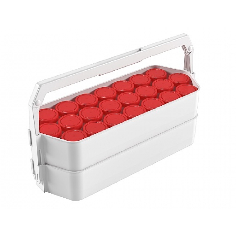Контейнер КПБ-01 предназначен для удобства размещения и переноса баночек для сбора биоматериалов, при транспортировке их до биохимических лабораторий в ЛПУ. Изготовлен из ударостойких, химически стойких, нетоксичных материалов: полистирола, пластика, полиэтилена и полиамида белого цвета, допущенных к применению Министерством Здравоохранения России. Контейнер состоит из двух корпусов-поддонов, двух ложементов и сборной ручки. Максимальное количество переносимых баночек – 44 шт. Температура воздействия на поверхности контейнера не выше 75°С. Максимальная рабочая нагрузка не более – 6,0 кг. Руководство Средний срок службы контейнера не менее двух лет с момента его изготовления. Гарантийный срок - 18 месяцев со дня продажи. Преимущества КПБ-01: Продуманная форма и небольшой вес при хорошей вместительности. Совмещение транспортировки с классическим процессом хранения анализов. Легкое очищение от загрязнений, влагоустойчивость.