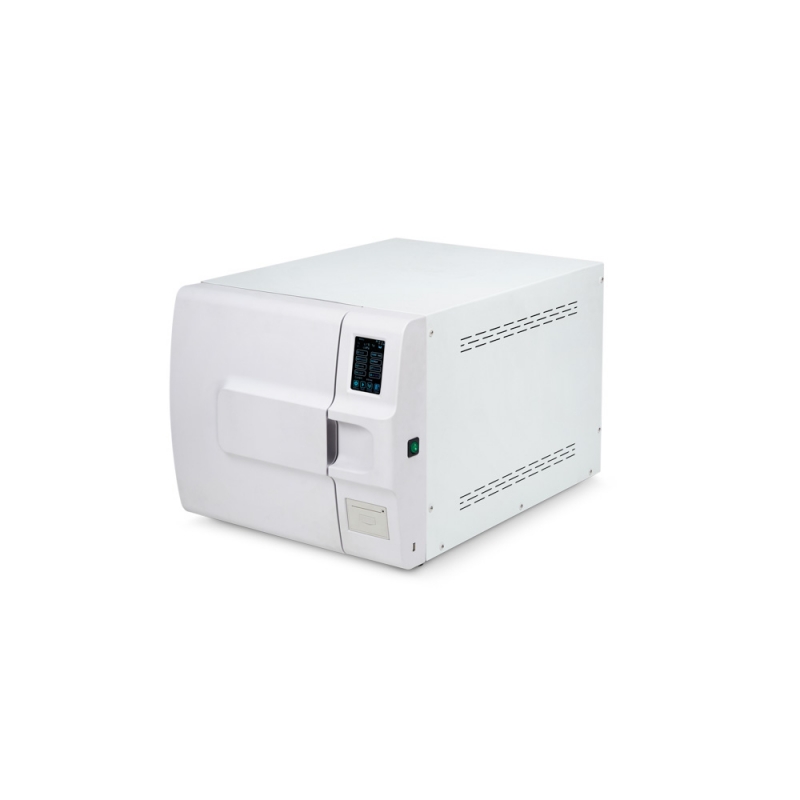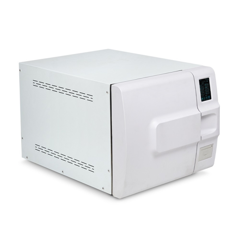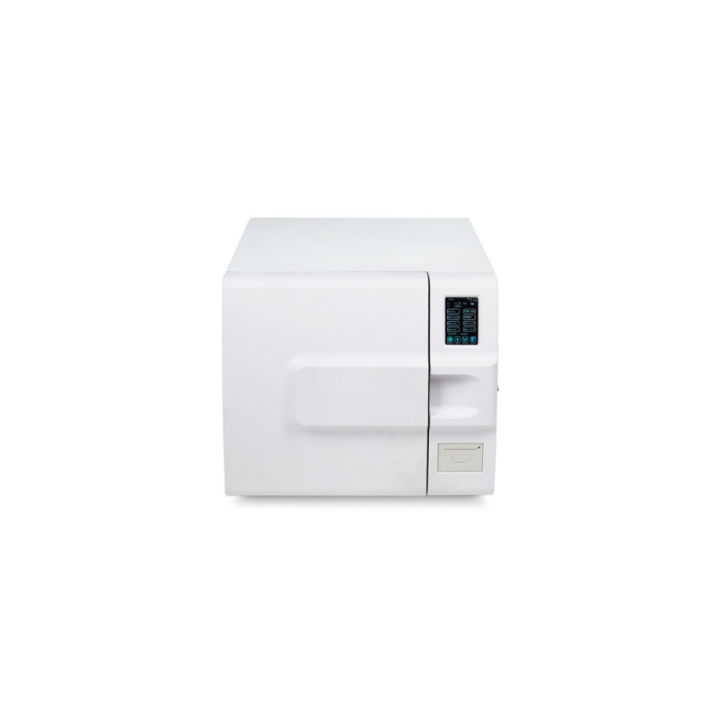 Стерилизатор паровой Армед DGT-23B (объём 23 литров) предназначен для стерилизации и сушки медицинских изделий, устойчивых к высоким температурам. Микроорганизмы полностью уничтожаются под воздействием сжатого пара. Неотъемлемая часть оснащения процедурных и стоматологических кабинетов, отделений скорой помощи и лабораторий. Основные характеристики: - оснащен камерой из нержавеющей стали объёмом 23 литров - подключение к водопроводу и канализации - опционально - тип дисплея - LCD - сенсорная панель управления, на дисплеи отображается дата, время, выбранная рабочая программа, температура и давление в камере, время стерилизации, положение дверцы стерилизатора, а также температура в помещении, где установлен прибор - 9 программ стерилизации и 12 программ сушки - способ управления - автоматический/ручной - загрузка - горизонтальная - задаваемые температуры: 118-138 °C - время нагрева - 15 мин - время выхода на рабочий режим - 2 с - время стерилизации: 4-30 мин - время сушки: 0-6 мин - средняя наработка на отказ - 6 000 циклов - питание - 230 В - тестовые программы: тест Бови-Дика; тест ХЕЛИКС; вакуумный тест - встроенный термопринтер, можно распечатать подробные данные о проведённой стерилизации: тип программы, температуру, давление, время обработки и сушки и прочие. Кроме того, всю информацию можно сохранить на USB-накопителе - для безопасности работы предусмотрена термозащита нагревательного элемента стерилизатора и предохранительный клапан на случай превышения допустимого давления в камере. При превышении температуры или давления раздаётся звуковой сигнал Комплект поставки: бумага для термопринтера; полка 3 шт; фильтр HEPA; уплотнительные кольца; сливной шланг для воды; силиконовый держатель для полок; уплотнитель для дверцы.