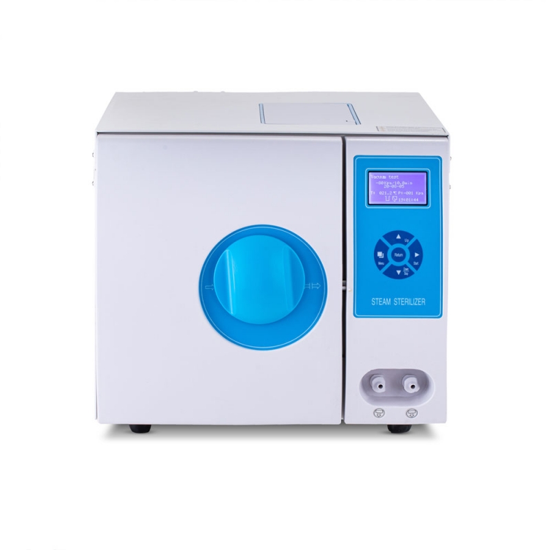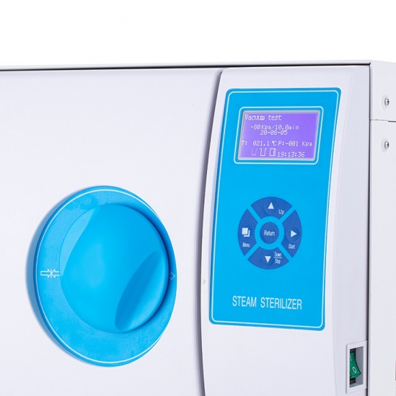 Стерилизатор паровой Армед DGT-8B (объём 8 литров) предназначен для стерилизации и сушки медицинских изделий, устойчивых к высоким температурам. Микроорганизмы полностью уничтожаются под воздействием сжатого пара. Неотъемлемая часть оснащения процедурных и стоматологических кабинетов, отделений скорой помощи и лабораторий. Основные характеристики: - оснащен камерой из нержавеющей стали объёмом 8 литров - оснащен водяным баком на 2,5 литра и баком для отработанной воды - подключение к водопроводу и канализации - не требуется - тип дисплея - LCD с точечной матрицей - на ЖК-дисплеи отображается дата, выбранная рабочая программа, температура в камере, время стерилизации, подключение термопринтера, количество чистой и отработанной воды, положение дверцы стерилизатора, а также температура и давление в помещении, где установлен прибор - 9 программ стерилизации и 12 программ сушки - способ управления - автоматический/ручной - загрузка - горизонтальная - задаваемые температуры: 115-138 °C - время нагрева - 15 мин - время выхода на рабочий режим - 2 с - время стерилизации: 4-30 мин - время сушки: 0-6 мин - средняя наработка на отказ - 6 000 циклов - питание - 230 В - тестовые программы: тест Бови-Дика; тест ХЕЛИКС; вакуумный тест - подключаемый термопринтер в комплекте, можно распечатать подробные данные о проведённой стерилизации: тип программы, температуру, давление, время обработки и сушки и прочие. Кроме того, всю информацию можно сохранить на USB-накопителе - для безопасности работы предусмотрена термозащита нагревательного элемента стерилизатора и предохранительный клапан на случай превышения допустимого давления в камере. После 15 минут бездействия происходит автоматическая блокировка дверцы, а при опустошении водяного бака и переполнении бака для отработанной воды раздаётся звуковой сигнал Комплект поставки: встроенный бак для дистиллированной воды; полка 3 шт; термопринтер; бумага для термопринтера; фильтр HEPA; уплотнительные кольца; сливной шланг для воды; силиконовый держатель для полок; уплотнитель для дверцы.