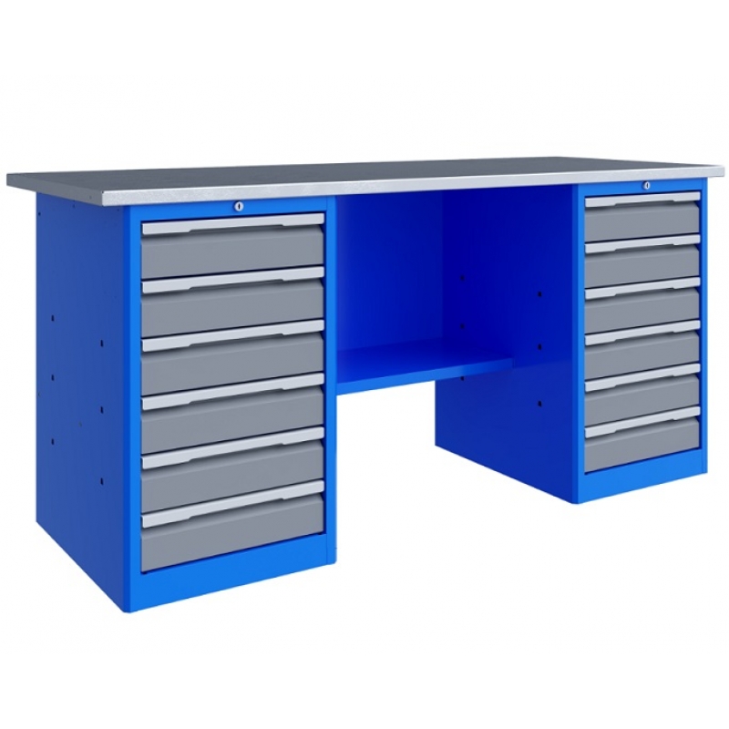 Верстак серии Technic 181.66.2 состоит из столешницы шириной 1796 мм, двух тумб P6 с шестью малыми ящиками и полки-стенки.
