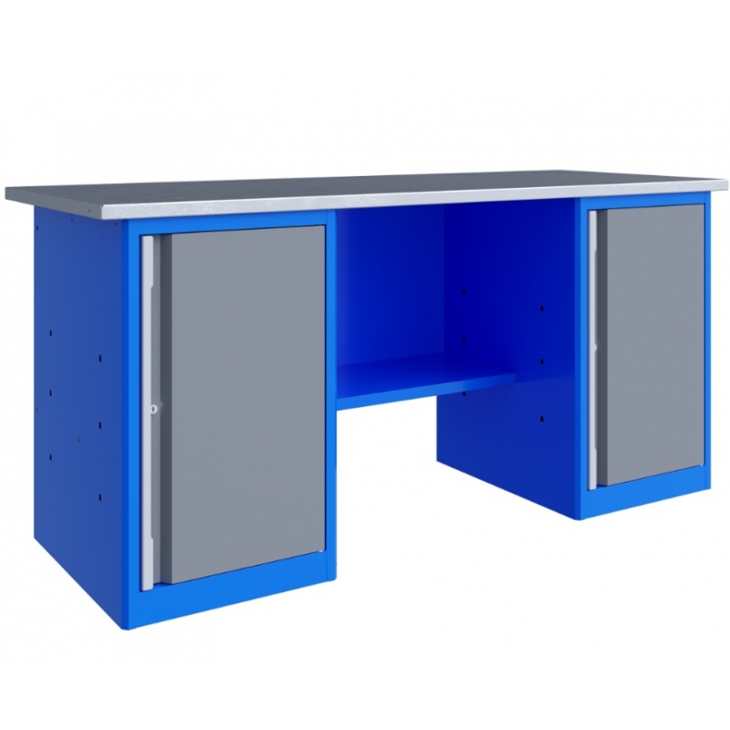 Верстак серии Technic 181.77.2 состоит из столешницы шириной 1796 мм, двух тумб P7 с дверью и двумя полками и полки-стенки.