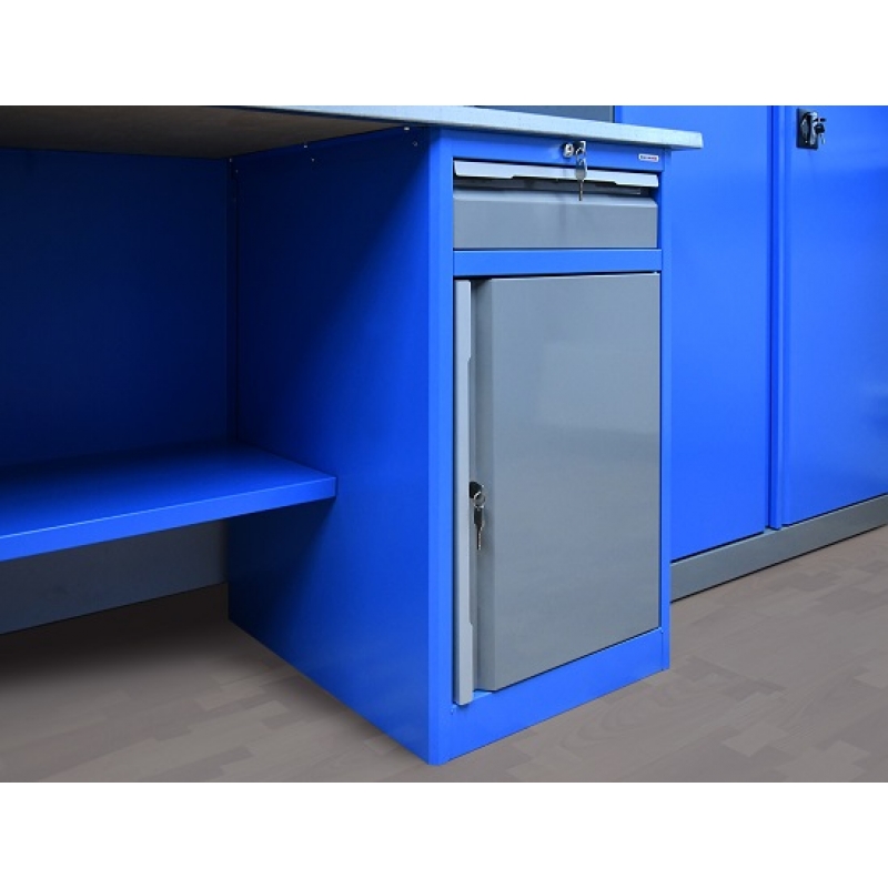 Верстак серии Technic 201.48.1 состоит из столешницы шириной 1996 мм, тумбы P4 с двумя малыми и двумя большими ящиками, тумбы P8 с малым ящиком и отделением с дверью и одной полкой и полки-стенки. Предназначен для выполнения сборочных, ремонтных, слесарных, монтажных и других видов работ на производстве, в сервисных центрах, мастерских, гаражах, а также для обучения технологии в учебных заведениях.