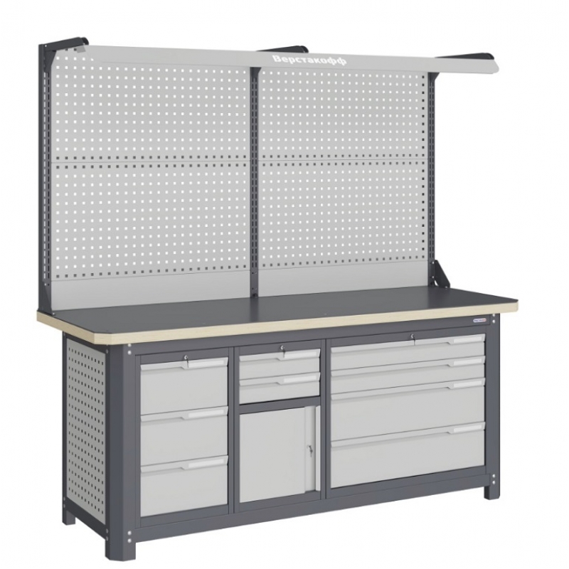 Верстак серии MECHANIC: MCN 2052.S39L4-2F состоит из столешницы шириной 1993 мм, рамы верстака, состоящей из опор, перемычек, боковых перфопанелей, двух малых модуля S3 и S9, одного большого модуля L4, двойного экрана с кронштейнами и комплекта освещения. Предназначен для выполнения сборочных, ремонтных, слесарных, монтажных и других видов работ на производстве, в сервисных центрах, мастерских, гаражах.