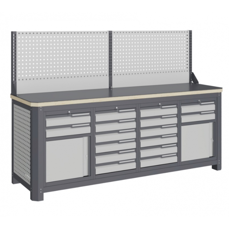 Верстак серии MECHANIC: MCN 2052.S6699-1 состоит из столешницы шириной 1993 мм, рамы верстака, состоящей из опор, перемычек, боковых перфопанелей, малых модулей S6 и S9, одинарного экрана с кронштейнами. Предназначен для выполнения сборочных, ремонтных, слесарных, монтажных и других видов работ на производстве, в сервисных центрах, мастерских, гаражах.