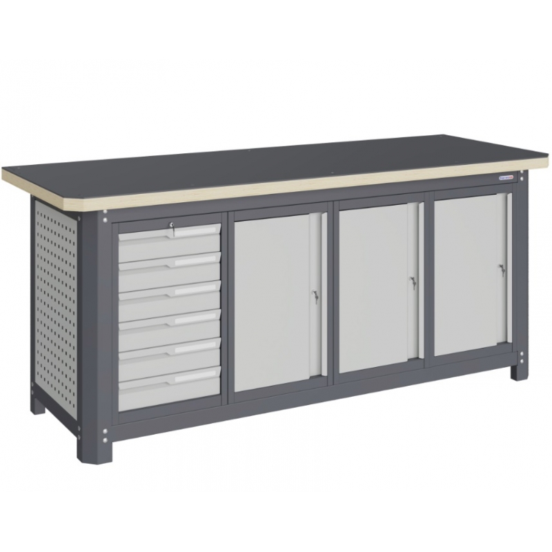 Верстак серии MECHANIC: MCN 2052.S6777 состоит из столешницы шириной 1993 мм, рамы верстака, состоящей из опор, перемычек, боковых перфопанелей, малых модулей S6 и S7. Предназначен для выполнения сборочных, ремонтных, слесарных, монтажных и других видов работ на производстве, в сервисных центрах, мастерских, гаражах.