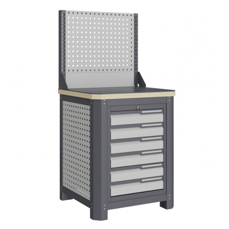 Верстак серии MECHANIC: MCN 0752.S6-1 состоит из столешницы шириной 693 мм, рамы верстака, состоящей из опор, перемычек, боковых перфопанелей, малого модуля S6, одинарного экрана с кронштейнами. Предназначен для выполнения сборочных, ремонтных, слесарных, монтажных и других видов работ на производстве, в сервисных центрах, мастерских, гаражах.