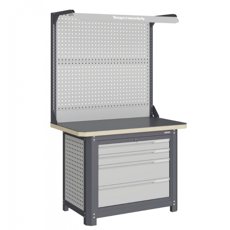 Верстак серии MECHANIC: MCN 1252.L4-2F состоит из столешницы шириной 1193 мм, рамы верстака, состоящей из опор, перемычек, боковых перфопанелей, большого модуля L4, двойного экрана с кронштейнами и комплекта освещения. Предназначен для выполнения сборочных, ремонтных, слесарных, монтажных и других видов работ на производстве, в сервисных центрах, мастерских, гаражах.