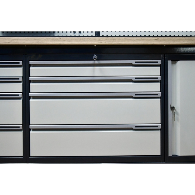Модуль верстака выполнен сварными. Ящики в модулях устанавливаются на шариковых телескопических направляющих полного выдвижения.