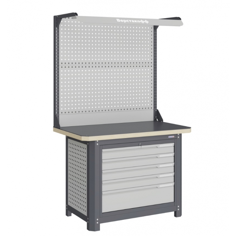 Верстак серии MECHANIC: MCN 1252.L5-2F состоит из столешницы шириной 1193 мм, рамы верстака, состоящей из опор, перемычек, боковых перфопанелей, большого модуля L5, двойного экрана с кронштейнами и комплекта освещения. Предназначен для выполнения сборочных, ремонтных, слесарных, монтажных и других видов работ на производстве, в сервисных центрах, мастерских, гаражах.