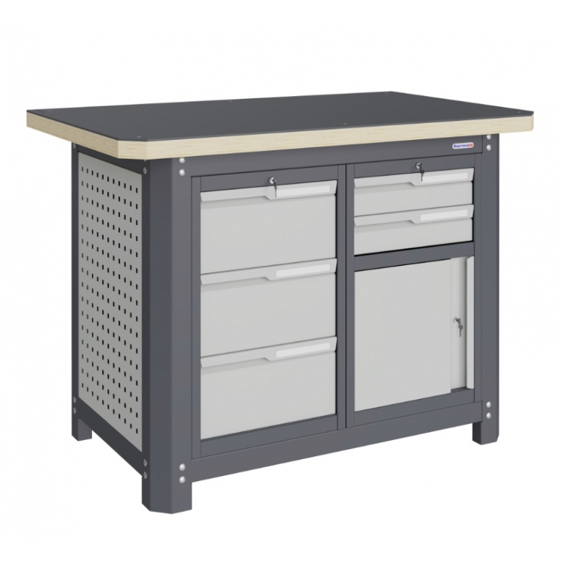 Модуль верстака выполнен сварными. Ящики в модулях устанавливаются на шариковых телескопических направляющих полного выдвижения.