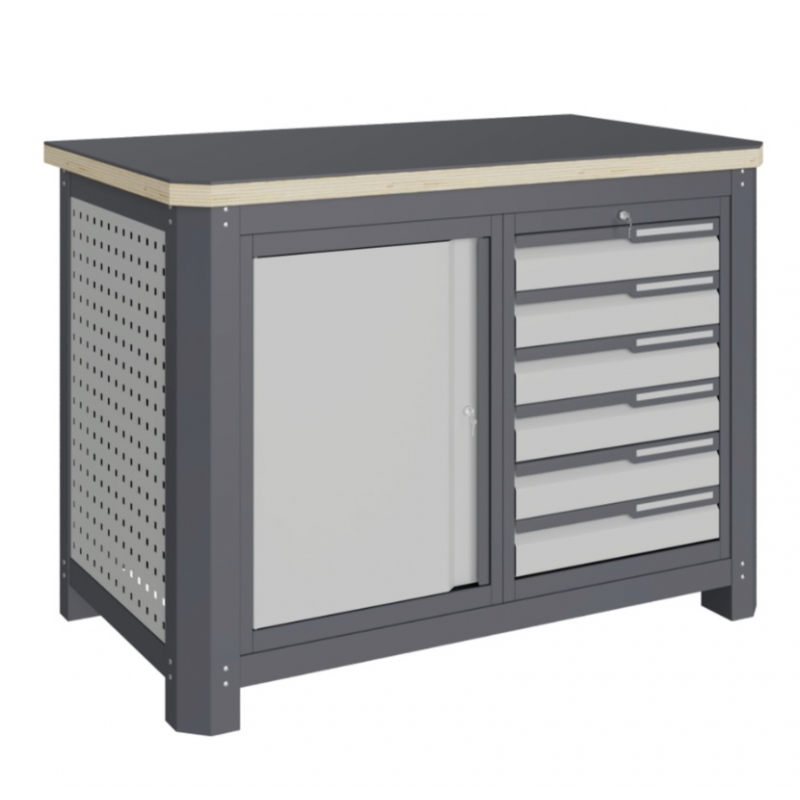 Рабочее место MECHANIC: MCN 1252.S67 состоит из столешницы шириной 1193 мм, рамы верстака, состоящей из опор, перемычек, боковых перфопанелей, небольшого модуля с ящиками S6 и модуля S7 ( c дверцей). Предназначен для выполнения сборочных, ремонтных, слесарных, монтажных и других видов работ на производстве, в сервисных центрах, мастерских, гаражах.