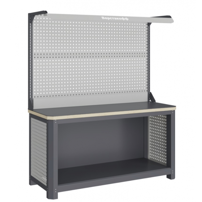Верстак серии MECHANIC: MCN 1552.0.111-2F состоит из столешницы шириной 1493 мм, рамы верстака, состоящей из опор, перемычек, боковых перфопанелей, трех комплектов полка-стенка SW1, двойного экрана с кронштейнами и комплектом освещения. Предназначен для выполнения сборочных, ремонтных, слесарных, монтажных и других видов работ на производстве, в сервисных центрах, мастерских, гаражах.