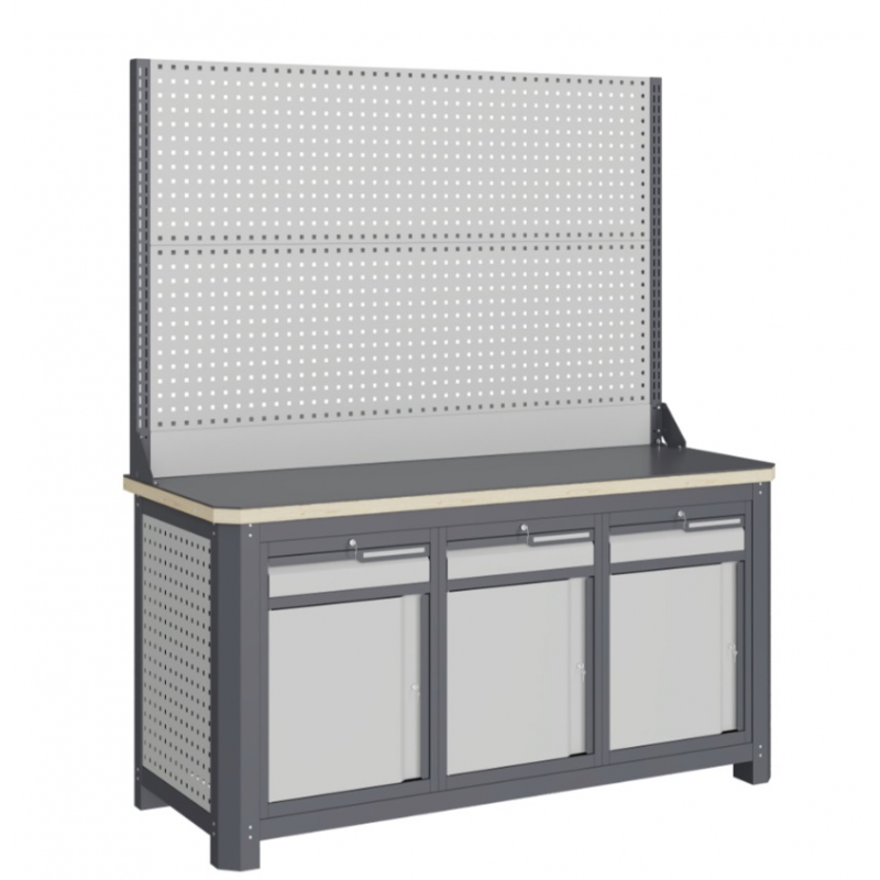Верстак серии MECHANIC: MCN 1552.S699-1 состоит из столешницы шириной 1493 мм, рамы верстака, состоящей из опор, перемычек, боковых перфопанелей, малых модулей S6 и S9, одинарного экрана с кронштейнами. Предназначен для выполнения сборочных, ремонтных, слесарных, монтажных и других видов работ на производстве, в сервисных центрах, мастерских, гаражах.