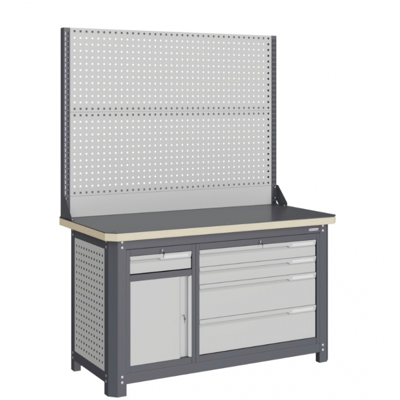 Верстак серии MECHANIC: MCN 1552.S8L4-2 состоит из столешницы шириной 1493 мм, рамы верстака, состоящей из опор, перемычек, боковых перфопанелей, малого модуля S8, большого модуля L4, двойного экрана с кронштейнами. Предназначен для выполнения сборочных, ремонтных, слесарных, монтажных и других видов работ на производстве, в сервисных центрах, мастерских, гаражах.