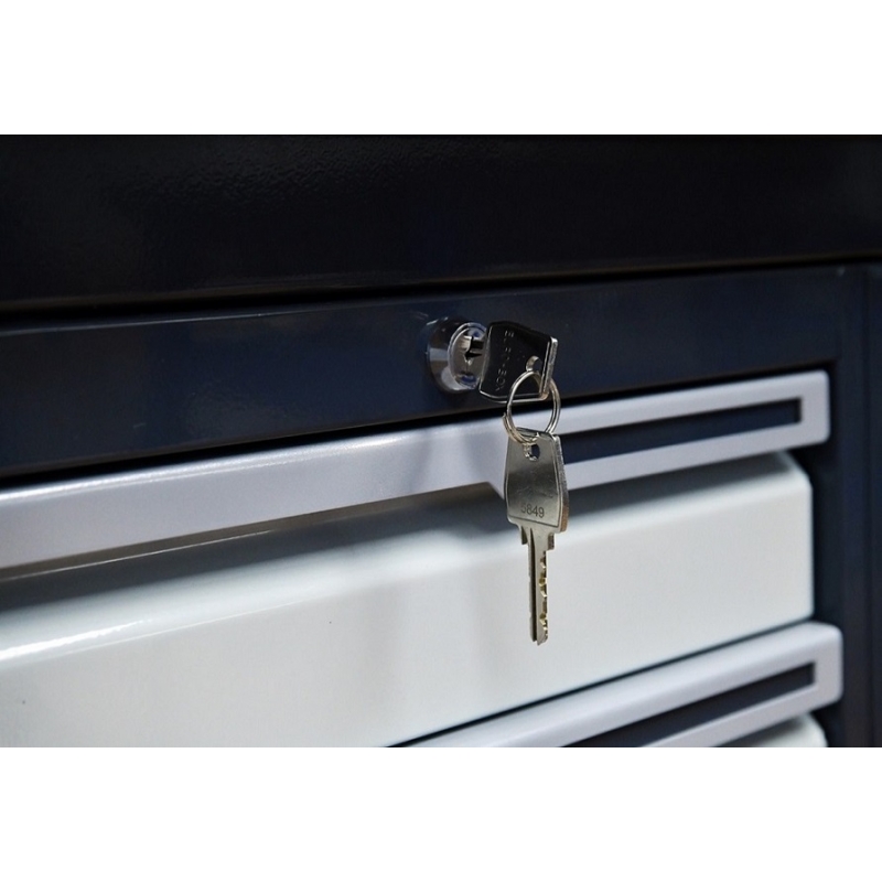 Модуль верстака выполнен сварными. Ящики в модулях устанавливаются на шариковых телескопических направляющих полного выдвижения.