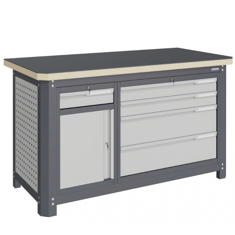 RALЦвет и текстура покрытия рамы верстака, накладки столешницы, корпусов модулей RAL 7024, гладкая, глянцевая. Цвет и текстура покрытия лицевых панелей ящиков и боковых перфопанелей RAL 7047, гладкая, глянцевая. Цвет и текстура покрытия накладок ручек ящиков RAL 9006, гладкая, глянцевая.