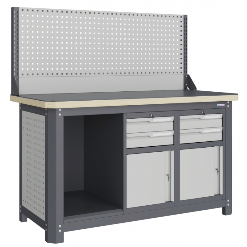 Верстак серии MECHANIC: MCN 1552.S99.1-1 состоит из столешницы шириной 1493 мм, рамы верстака, состоящей из опор, перемычек, боковых перфопанелей, двух малых модулей S9, комплекта полка-стенка SW1, одинарного экрана с кронштейнами. Предназначен для выполнения сборочных, ремонтных, слесарных, монтажных и других видов работ на производстве, в сервисных центрах, мастерских, гаражах.