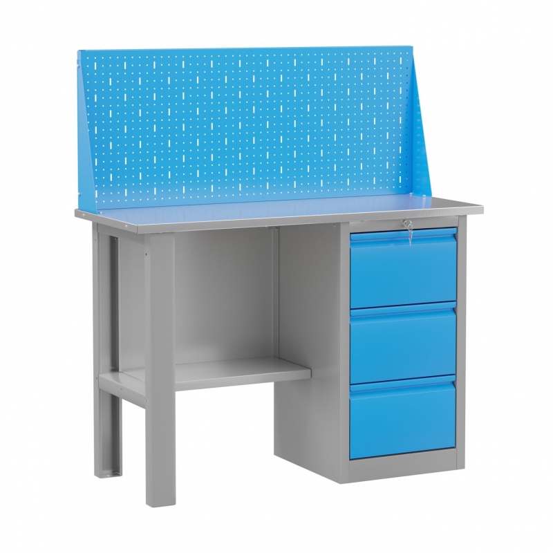 Верстак SELF 121.13-1 – оптимальное решение для обустройства рабочих мест слесарей, плотников и других специалистов промышленных цехов, автомобильных мастерских, частных гаражей и т.д. Данная модель верстака относится к бюджетной серии, поэтому она отличается компактностью, недорогой ценой, невысокой максимальной нагрузкой. Верстак способен выдержать до 200 кг, что достаточно при небольших объемах работ.