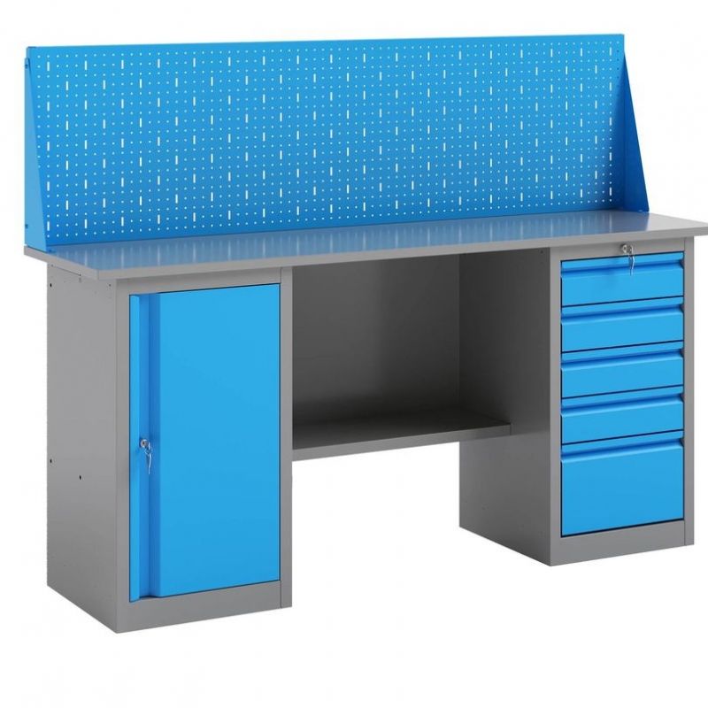 Верстак SLF 181.57-1 – незаменимое оборудование для работы слесарей, плотников, механиков в автосервисах, мастерских, промышленных цехах и т.д. Модель относится к бюджетной серии, поэтому ее максимальная нагрузка – средняя и составляет 300 кг, а стоимость выгодно отличается от аналогичных моделей.